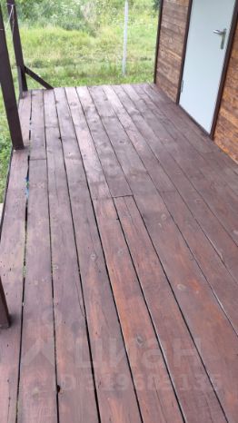 Просторная терраса обновлена антисептиком.