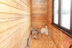 - Две комнаты, одна из которых проходная, изначально предполагались как баня. Но не составит ни какого труда сделать две изолированные комнаты.