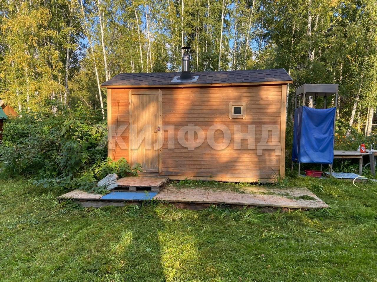 Добротная новая баня из лиственницы, с печью термофор, бак на 50 литров воды.