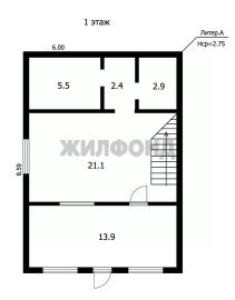 На первом этаже: кухня-прихожая 14 кв, гостиная 20 кв, санузел 3 кв, помещение для сауны 5.5 кв.