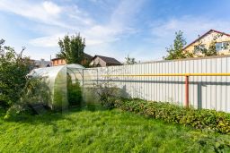 Весь участок огорожен забором из металлопрофиля высотой 2 метра, что делает комфортное проживание в доме.