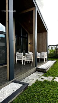 В доме большая кухня-гостиная с террасой и витражными окнами; просторные комнаты - детская, кабинет/гостевая, мастер-спальня с личной гардеробной и ванной комнатой, большая душевая комната, совмещенная с постирочным блоком.