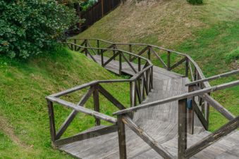 Попадая в главный дом, мы можем пройти по верхней части участка или спуститься по лестнице, которая ведет как к дому так и к берегу.
