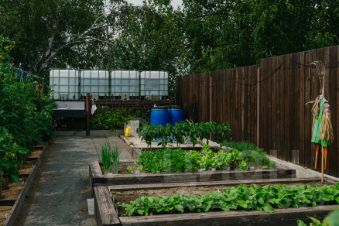 Далее, проходя по участку мы можем пойти или в аккуратно сделанную огородную зону, которая обособлена от общей территории, с организованным поливом.