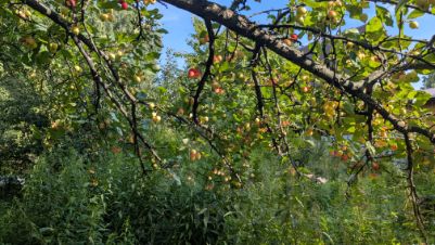 Лес рядом - 100 метров, комаров и гнуса на участке немного, хотя лес близко, дорога между обществами граничит с участком, что дает возможность зимнего подъезда, жители СНТ живут круглый год по улице вдоль дороги; рядом строиться Восточный объезд, это значительно облегчит доступ к СНТ с Академгородка и снизит траффик на Бердском шоссе.