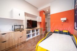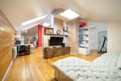 мансардный этаж: зона отдыха всей семьи: персональные зоны для детей, диванная зона с телевизором для родителей, две кладовые, санузел.