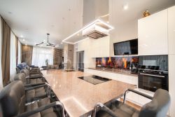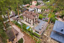 На земельном участке 10 соток продается строение общей площадью 574 кв.м., состоящее из жилого дома общей площадью 470 кв.м. и примыкающего к нему банного комплекса с бассейном общей площадью 104 кв.м. Также на земельном участке находятся два гаража, площадью 45,5 кв.м. и 26 кв.м.