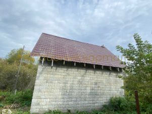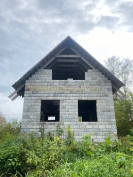 В подарок покупателю остается готовый сруб из калиброванного бруса и металлочерепица. Дом построен год назад из блоков "теплостен".