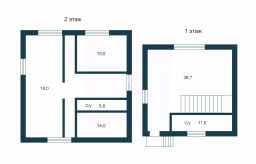 ВТОРОЙ ЭТАЖ- это три изолированные спальни, где каждый член семьи сможет уединиться и отдохнуть. 18, 15 и 14 кв. м.,а так же холл 7,9 кв.м., второй сан/узел 5,8 кв.м.