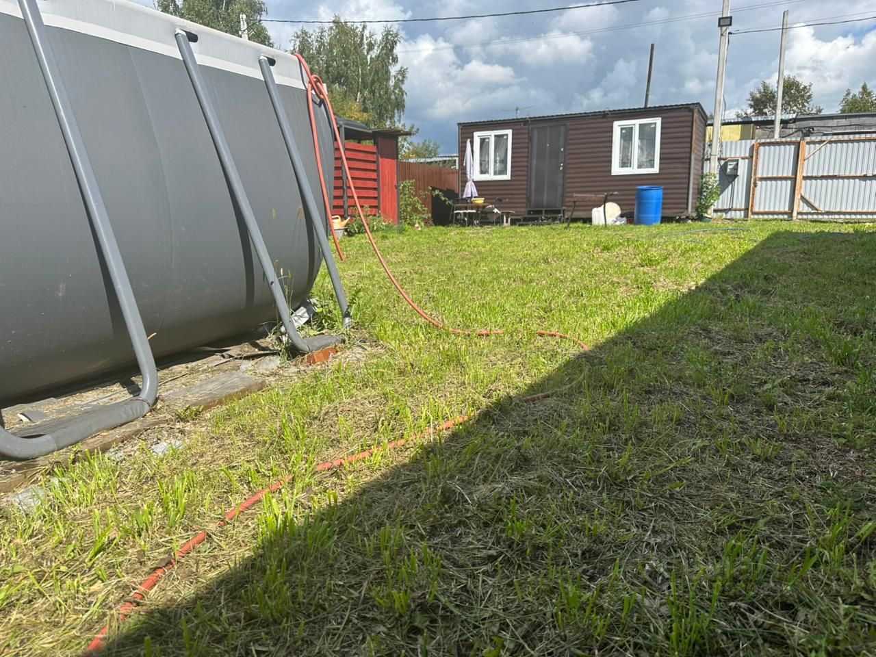 Участок с фундаментом! Площадь участка 4,07 сотки Фундамент 6*4 кв.м. Выведена канализация в септик 13м3! Есть металлический вагончик с двумя комнатами, обшитый профлистом. Большой бассейн не только для детей, но и для взрослых.