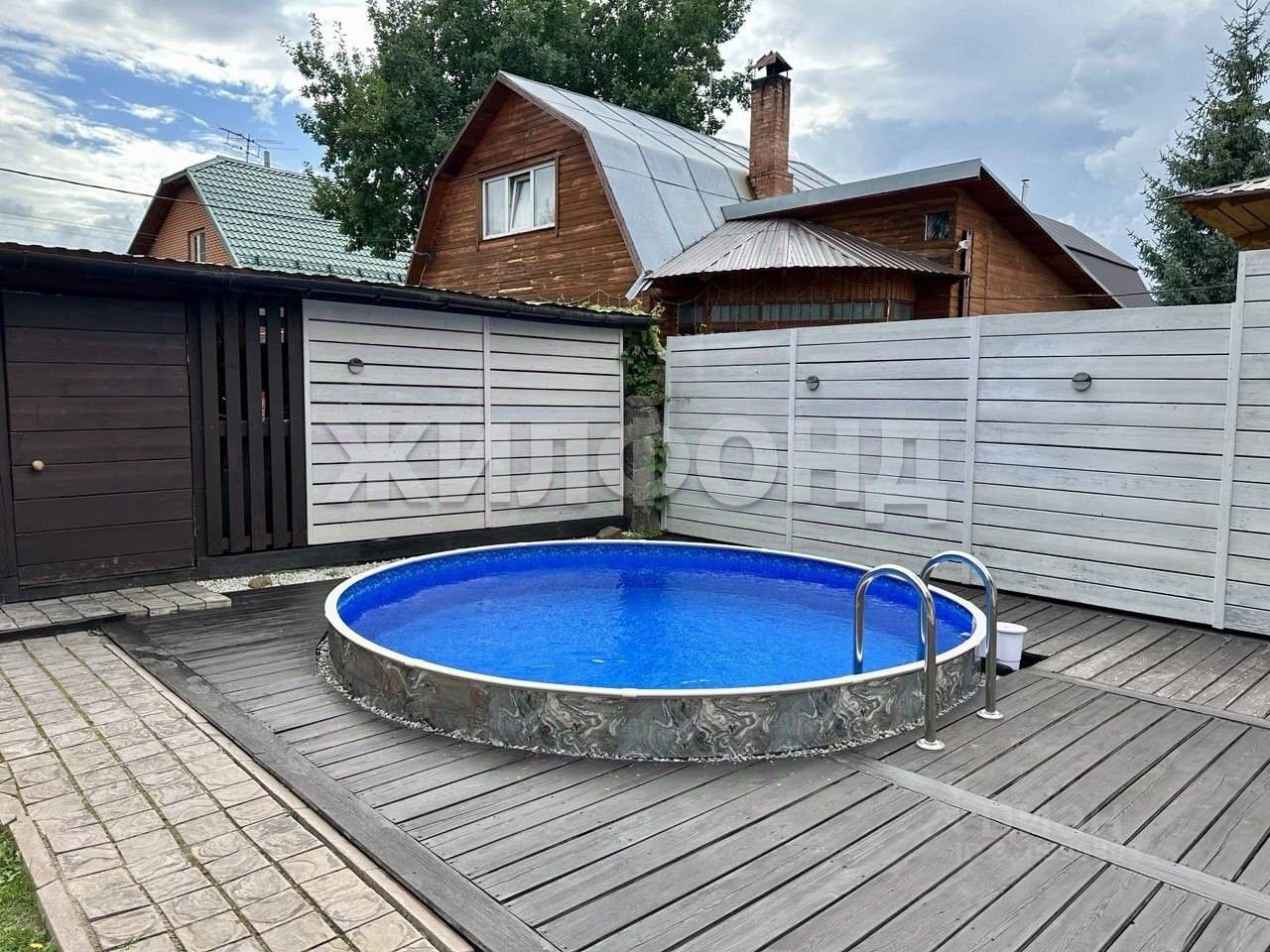 На территории есть баня (внутри бани: парная, мойка и просторная комната отдыха), подогреваемый бассейн, крытый навес на две машины, клумбы и зона отдыха на территории.