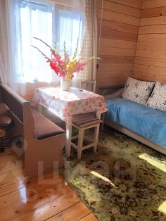 На первом этаже закрытая веранда 6х2, комната с кухонной зоной 4х4 и баня 4х2.