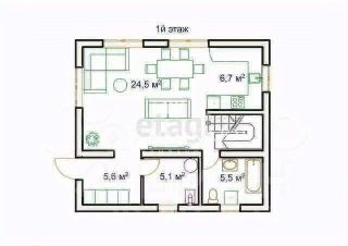 Кухня-гостиная, 3 спальни, 2 санузла, котельня.