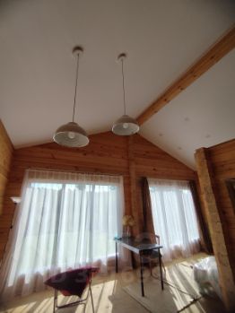 Электричество "под ключ": 21 розетка, все осветительные приборы, натяжные потолки. Кабель подведен под землей — никаких висящих проводов от столба до дома.