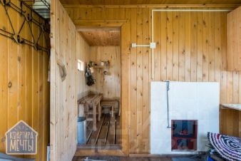 Баня 3,5х4 м, на ленточном фундаменте из бруса 100х150 мм. Печь Тамань, с ресурсом обогрева 15м3. Внутренняя отделка - вагонка из осины. Полки из кедровой доски.