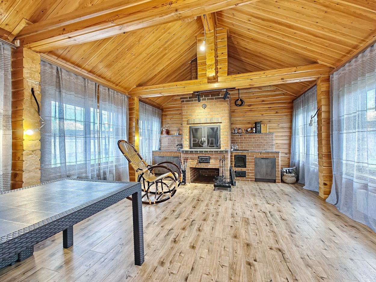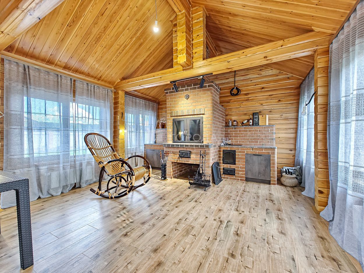 -на первом этаже дома расположились уютная . светлая кухня-гостиная, гостевая спальня, кабинет, помещение для барбекю где установлена русская печь, мангал, печь для казана, посудомоечная машина, стол, вмонтирована вытяжка, теплый пол, санузел с гардеробной, дополнительный выход во двор