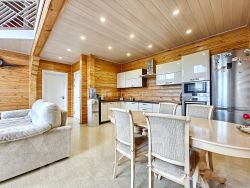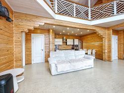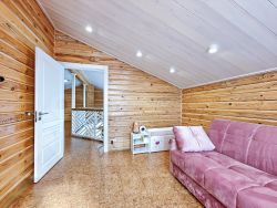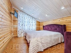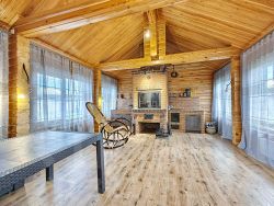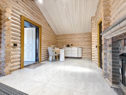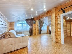 -Баня из оцилиндрованного бревна :просторная комната отдыха, моечное отделение, парильная.