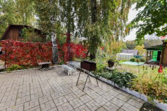 На участке построена летняя кухня с террасой и выходом в зону отдыха, к ней есть возможность пристроить дом, фундамент уже залит. Так же есть большой дровяник, железный контейнер для инвентаря и инструмента.