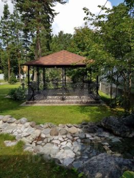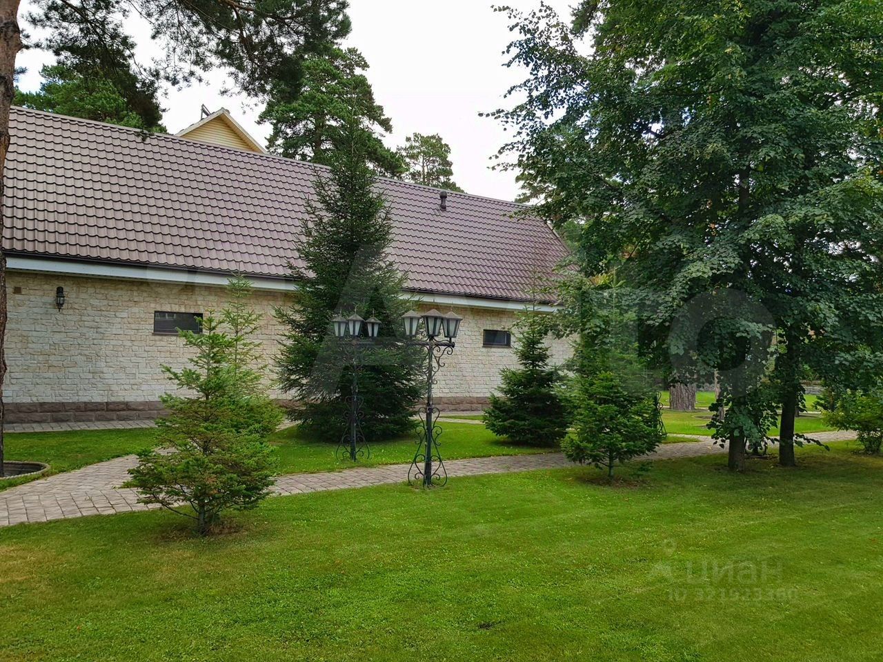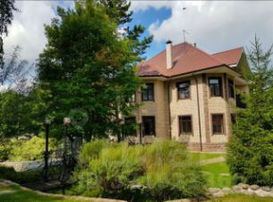 Кирпичный коттедж под чистовую отделку облицован камнем, площадью 450 кв.м. Все коммуникации (газ, вода, эл. энергия) и документы на дом и земельный участок оформлены. На территории есть вековые сосны, яблони, груши, березы, вишни, рябины, кустарники, газоны, дорожки, беседка. Имеется гараж под технику площадью 80 кв. метров с помещением на втором этаже для проживания обслуживающего персонала. Точный адрес: г. Бердск, территория санатория Бердский дом 11а.