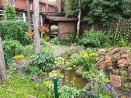 Во дворе дома - ухоженный участок 2 сотки "чистыми" (беседка, зона барбекью, большая огороженная газонная площадка для детей или животных, клумбы, альпийская горка, прудик, немного ягодных посадок).