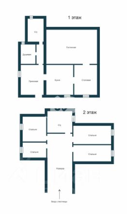 На 2-ом этаже: 4 спальни, совмещенный санузел.