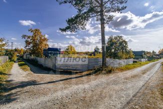 Участок 6,3 сотки, с двух сторон установлен забор из профлиста. С лицевой части установлены ворота.