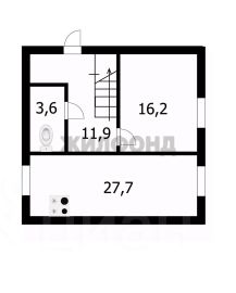 На первом этаже: гардеробная, санузел, спальня, кухня-гостиная 27,7м.кв. На втором этаже: 3 изолированные спальни, гардероб.