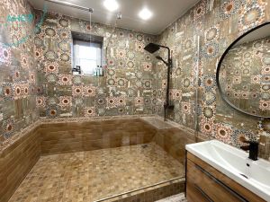 рс: цвет кафеля в санузле точно такой же как и в ванной.. просто лампочка желтая - искажает цветопередачу...(