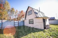 Имеется небольшой дом. Первый этаж построен из шлакоблока, второй щитовой. В дом заведена вода, имеется септик. Новая проводка, печное отопление. Так же является большим плюсом, что не одно соседское окно не выходит на участок.