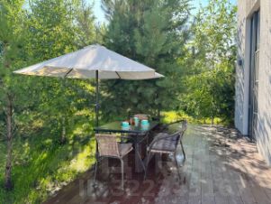 Терраса 45 м2 с садовой мебелью и видом на собственный лес.