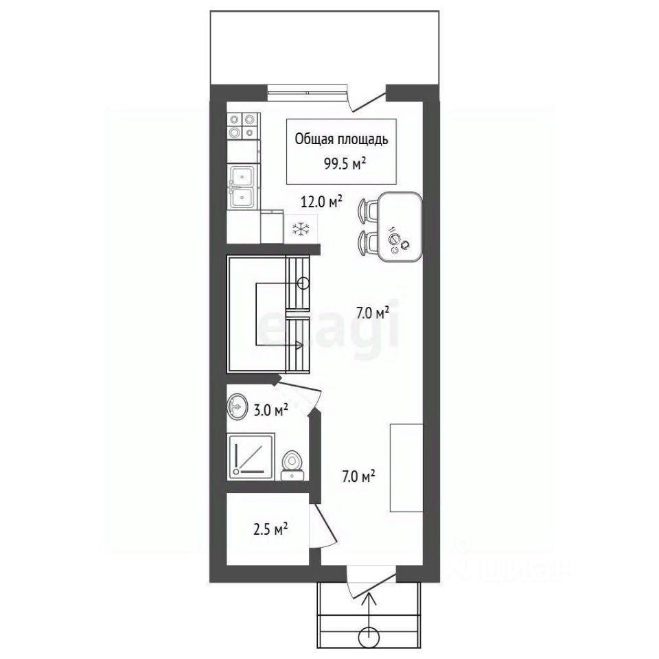 Первый этаж встречает нас обустроенной входной группой, светлая и просторная кухня-гостиная, современный санузел и котельная, закрытое место для хранения вещей и доступ в забетонированный подвал.