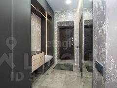 Входная группа оформлена крупноформатной плиткой с большим платяным шкафом.