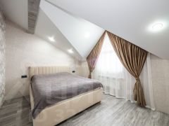 Третий этаж предлагает просторную гостевую комнату с двухспальной кроватью и лаунж-зону в 22 кв.м. с зоной под домашний кинотеатр с диваном.