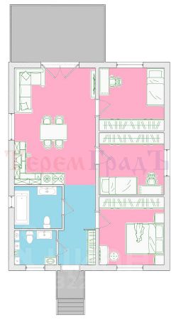 Коттедж состоит из кухни-гостиной - 25,05 кв.м, 3 (трёх) спален - 13,5; 12,4 и 10,13 кв.м., и вспомогательных помещений: холла, коридора, санузла и второго малого санузла, включающего в себя котельную, терраса - 15кв.м.. Высота от пола до потолка 3 метра. Все материалы и комплектующие в доме высокого заводского качества! ВАЖНО: мы указываем фактическую площадь дома согласно выписки из ЕГРН !