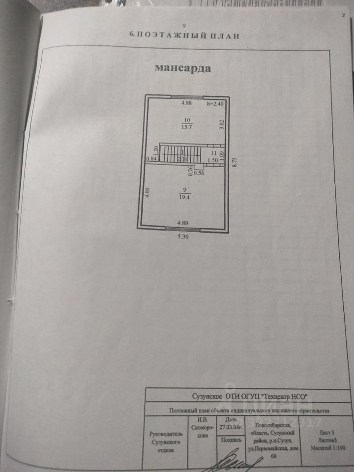 2 этаж: жилая комната (19,4 кв.м), жилая комната (15,7 кв.м), л.площадка (1.6 кв.м), туалет.