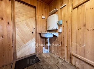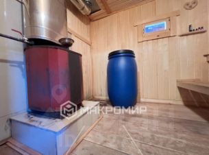 Дом-баня построен из бруса (10 на 15) на ленточном фундаменте, в доме 2 этажа.