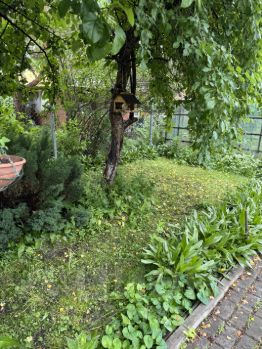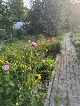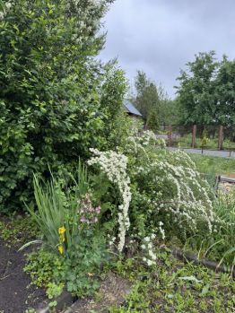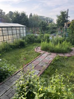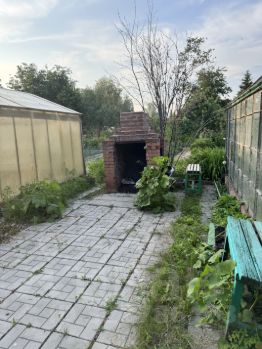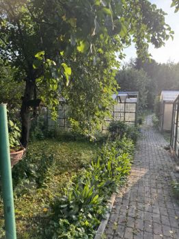 На ухоженном участке три капитальные теплицы, ели, кедр, жимолость, вишня, три плодоносящих яблони, малина, туя, виноград,черёмуха, редкие кустарники и цветы. Земля плодородная, участок поднят по сравнению с соседскими за счет привозной земли. Участок огорожен с 3-х сторон.