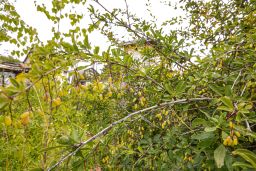 На участке посажены плодово-ягодные кустарники.