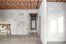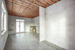 Дом построен в 2024 году из газобетонных блоков. Общая площадь дома — 97,4 кв. м, жилая — 42,43 кв. м, кухня — 7,65 кв. м. Три комнаты площадью 20,5, 10 и 11,8 кв. м позволяют организовать пространство по своему вкусу. В доме также два санузла — раздельный и совмещённый.