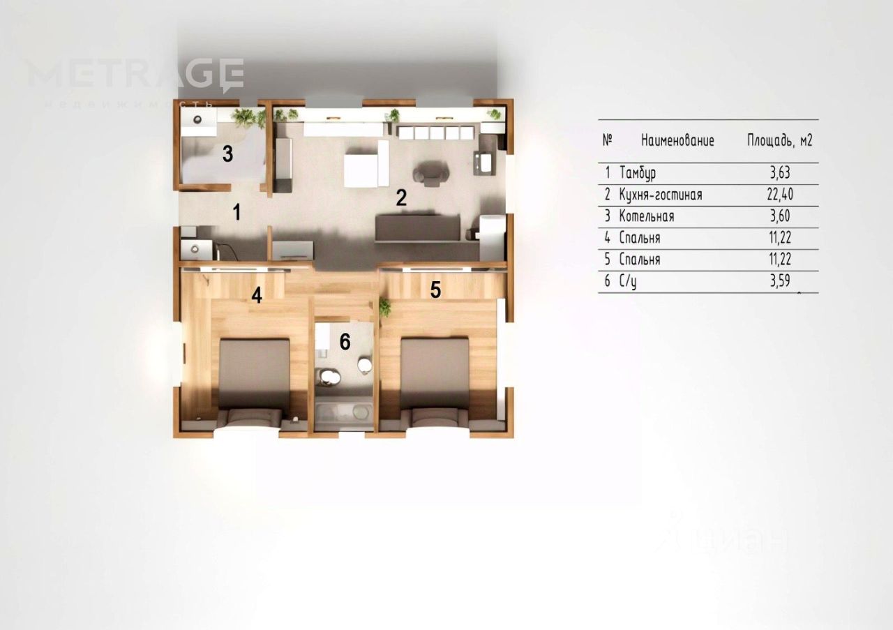 Площадь 64м2