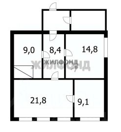 В доме гостиная 21,8 кв.м.,две спальни 14 и 9 кв.м., и кухня 9 кв.м.