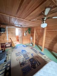 - 2х этажный дом (2003 года) из бруса 10*20, вагонка +утеплитель, на фундаменте, На первом этаже расположена: веранда- кухня-гостиная. Деревянная лестница на второй этаж На втором этаже расположена большая спальня, отопление электрокотел., печь, подключен бойлер, стиральная машинка, вся мебель, техника остается новому владельцу, у дома рядом большой железный гараж). Возможна прописка.