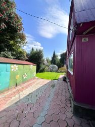 На участке 2 дома большой (85.4 кв.м) и малый (36.9), баня (21 кв.м.) беседка, теплица, металлический гараж , на участке своя скважина (25 м), сливная яма (откачивать не надо), откатные ворота, парковка на несколько машин, площадки и дорожки тротуарная плитка , газон.