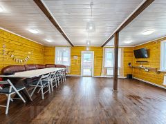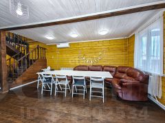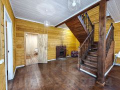 На первом этаже вас ждет уютная кухня-гостиная, где можно собираться с семьей и друзьями, а также баня с просторным предбанником для расслабляющих вечеров. Из гостиной вы сможете выйти на большую террасу, где приятно проводить время на свежем воздухе. Здесь же расположены котельная и санузел, что делает пространство максимально функциональным.