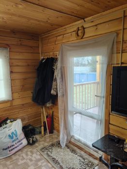 Внутри остаётся кухонный гарнитур, овальный стол, мебель на веранде, лавочки и часть стульев.