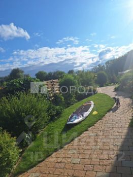 3. Третья часть - огород с двумя теплицами, плодоносящими деревьями и кустарниками, а также грядками для клубники, трав и корнеплодов. Все дорожки выложены тротуарной плиткой.