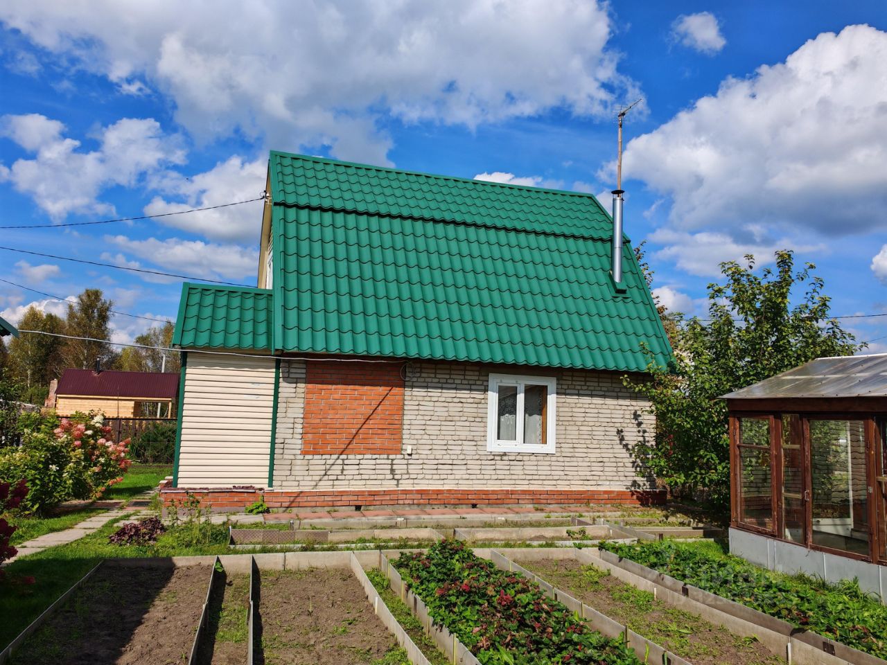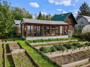 На идеальном, ухоженном участке ( 4 сотки) есть баня из бруса, просторная беседка, большой парник и аккуратные грядки, дорожки, скважина. Летом вода подаётся централизовано.