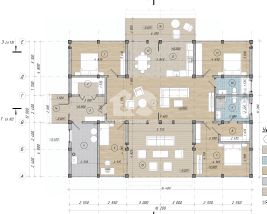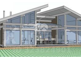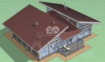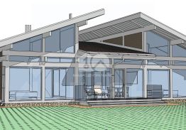 - планировка включает просторную кухню-гостинную со столовой, 4 спальни, одна из которых мастер спальня с с/у и гардеробом. Дополнительный полноценный с/узел, две террасы. Панорамное остекление дома выражает отсутствие границ между природой и жителями дома;