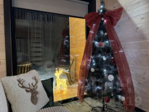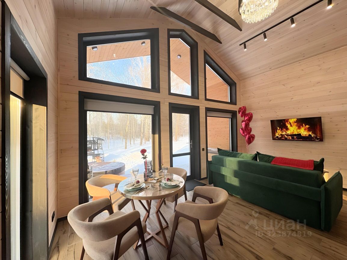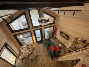 Дом в стиле Барнхаус 74,3 м² с панорамными окнами и видом на лес, мангальной зоной, горячей купeлью Фурако, каркасной баней и открытым каркасным бассейном (в летний период) на учaсткe 8 сот.