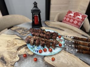 * закрытая от солнца и дождя мангальная зона с живым огнём и печью для казана;